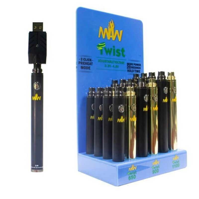 24pcs Set Maw Twist Battery Bottom Vv Preheat 650mah 900mah 1100mah Mode With Display Box For